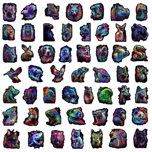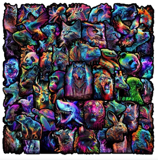 🌈 Stickers de animales neón con efectos luminosos y tonos vibrantes.