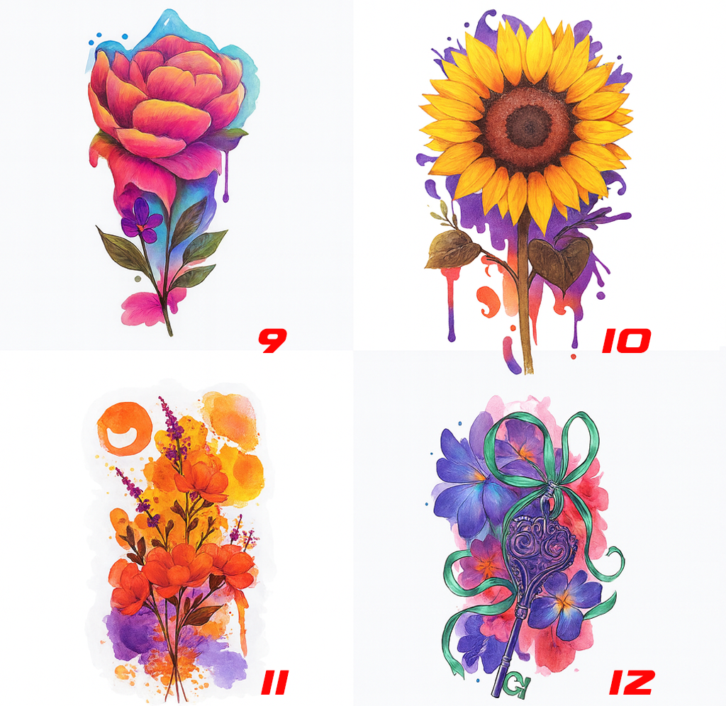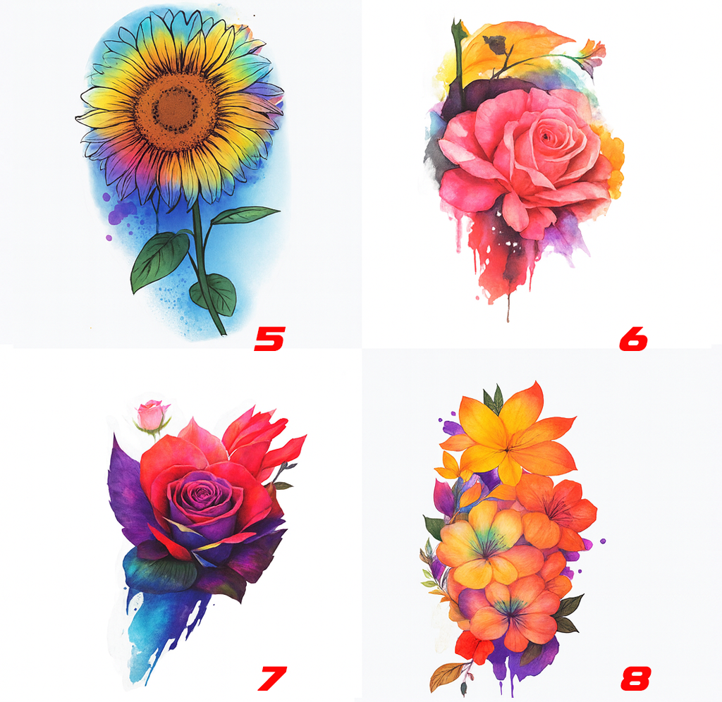 Los tatuajes de flores representan belleza, vida, crecimiento y feminidad. Nuestros modelos temporales permiten lucir diseños exclusivos sin dolor y con una duración ideal de 3 a 7 días.